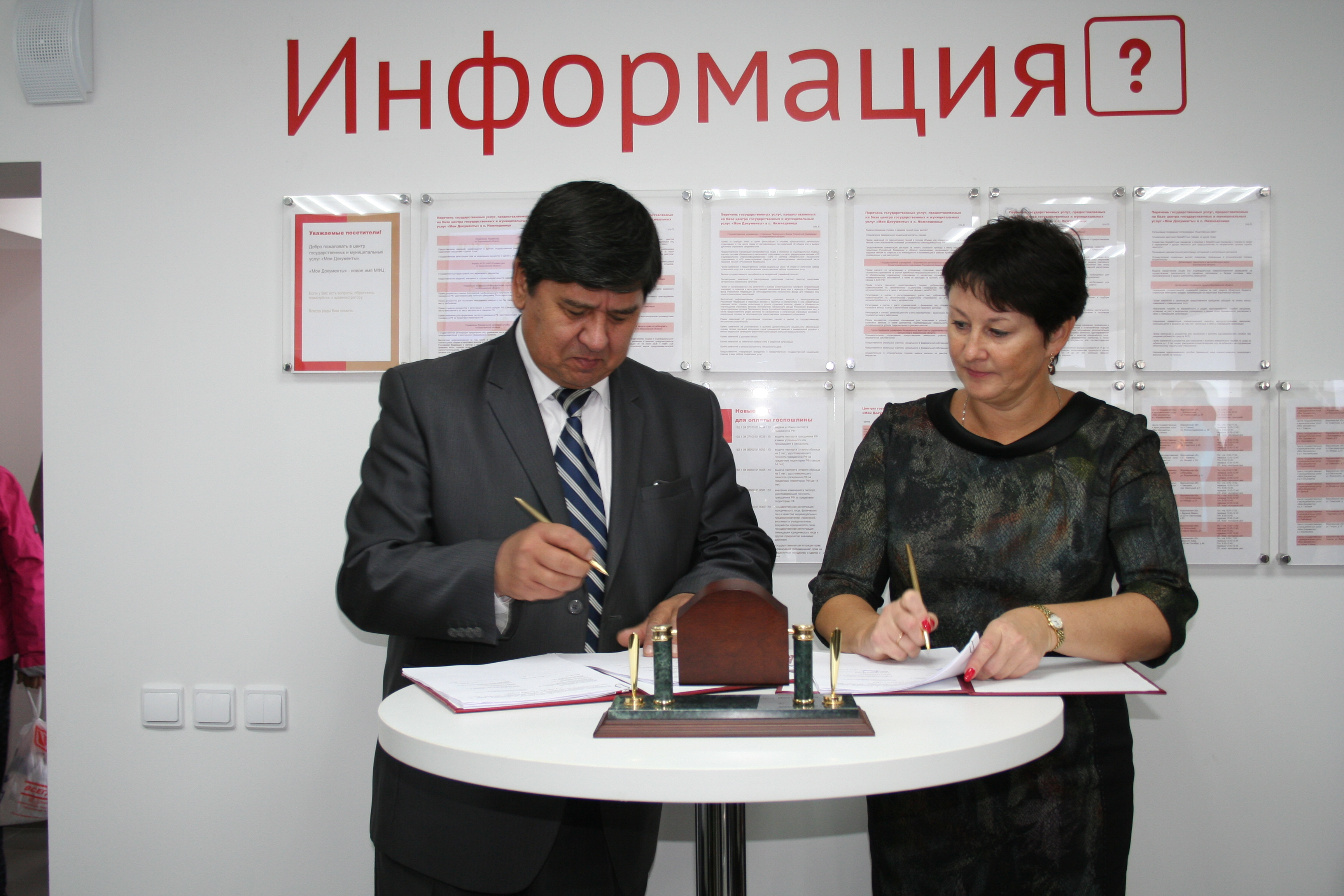 В центре «Мои Документы» жители района смогут получить документы на все случаи жизни в минимальные сроки. Среди наиболее социально-значимых услуг: регистрация права на недвижимость, оформление паспорта гражданина Российской Федерации, оформление СНИЛС, сертификата на выдачу материнского капитала, детских пособий. В центре оказываются услуги муниципального уровня. Соглашение об их предоставлении подписали глава Нижнедевицкого района Валентин Копылов и директор АУ «МФЦ» Майя Богдалова.